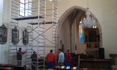 Úvod Fotoalbum Generální oprava kostela sv. apoštolů Petra a Pavla Další nelehký úkol splněn: svítidla jsou zpět na svých místech IMAG4255